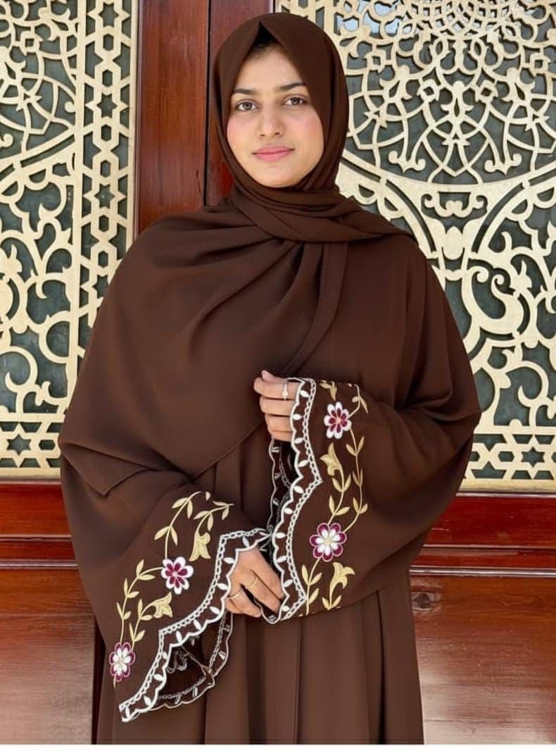 Home › Products › Embroidery Sleeve Work Abayas › Brown Floral Embroidery Sleeve Abaya Burkha